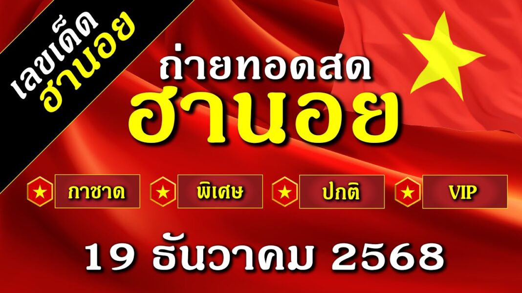 สวัสดีค่ะ เพื่อนๆ ชาวหวยทุกท่าน วันนี้เรามีข่าวดีมาฝากเกี่ยวกับหวยฮานอยที่ทุกคนรอคอย โดยในวันนี้จะมีการถ่ายทอดสดผลรางวัลของหวยฮานอยประเภทต่างๆ ทั้งหวยฮานอยปกติ, หวยฮานอยพิเศษ และหวยฮานอยวีไอพี ซึ่งในวันนี้ตรงกับวันที่ 19 ธันวาคม 2568 โดยท่านสามารถติดตามผลรางวัลได้ที่นี่ เพื่อไม่พลาดทุกการอัปเดตเลขเด็ดที่จะช่วยให้ทุกท่านรวยจากการเสี่ยงโชคในครั้งนี้